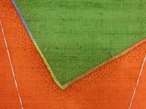 リサイクル 未使用品 手織り節紬 相良刺繍 幾何学模様袋帯