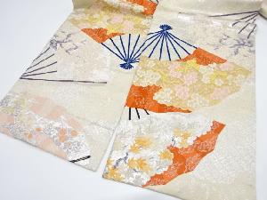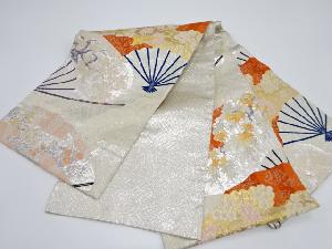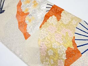 扇に枝梅・紅葉模様織り出し袋帯