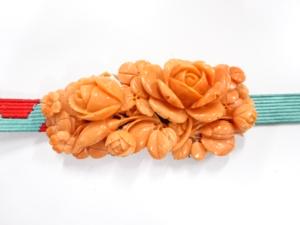 アンティーク 本珊瑚 薔薇 帯留め(約22.45g)