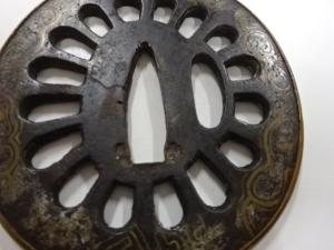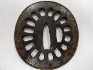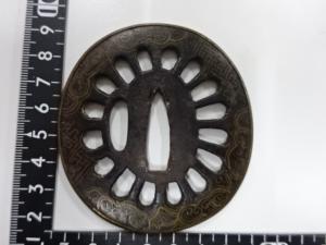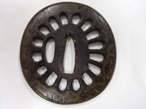 鉄地 平象嵌 透かし 銅覆輪 鍔