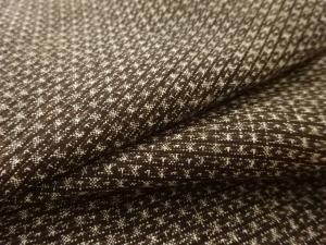 洗練された落ち着きのある色合いで、生地そのものは柔らかく、しわになりにくいと言われている。大島紬の特徴とも言える、織締めと呼ばれる技法で藍を用いて染められた糸を使用している。