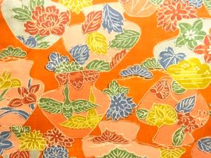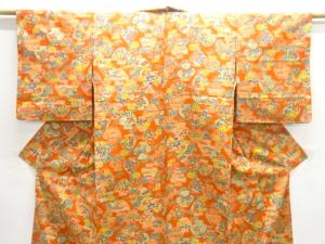 壷に花鳥模様本場大島紬着物(染)