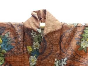 未使用品 流水に花模様織り出し十日町紬単衣着物