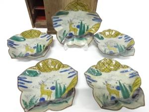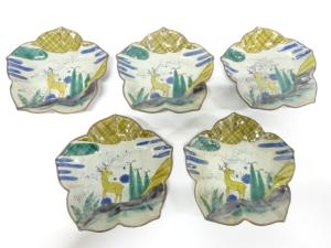 古九谷 青手 鹿文様 皿 5客