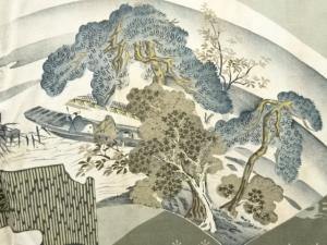 アンティーク 破れ色紙に果物模様肩裏紋付羽二重男物羽織