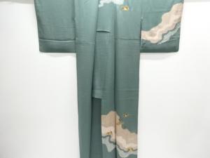 絞り霞に花筏模様刺繍一つ紋訪問着