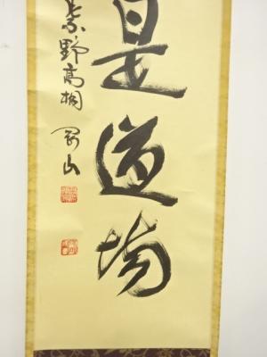 前大徳 松長剛山筆 「直心是道場」 一行書 肉筆紙本掛軸