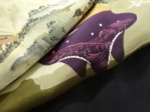 アンティーク 時代風景模様肩裏紋付羽二重男物羽織
