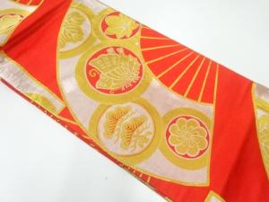 扇面に家紋織出し丸帯