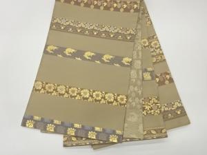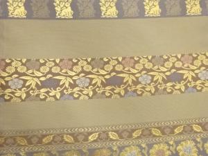 金通し横段に角倉文・笹蔓緞子模様織出し袋帯