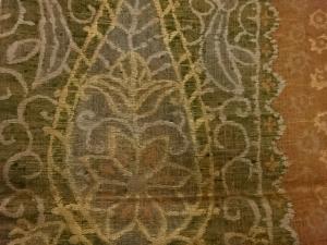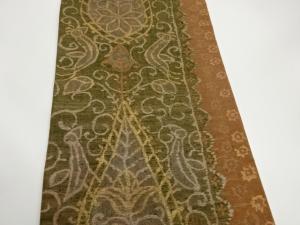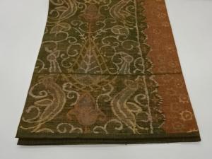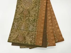 手織り紬抽象雫に花唐草・鳥模様織出し袋帯