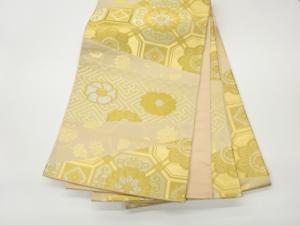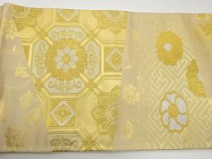 切り嵌め風蜀江華紋に七宝・花々模様織出し袋帯