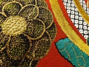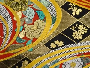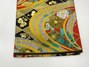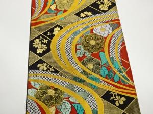 曲線に椿・辻ヶ花模様織出し袋帯