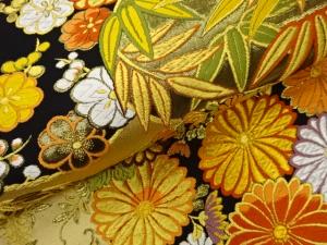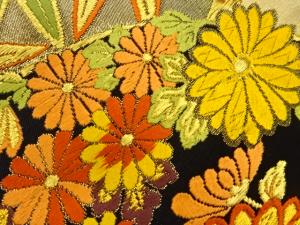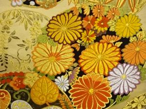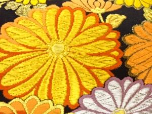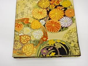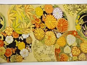 丸文に菊・梅・笹模様織出し袋帯