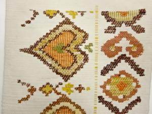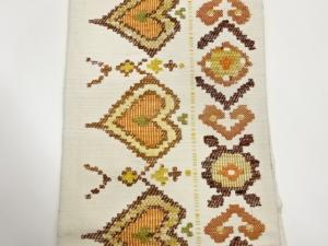 手織り紬ハートに幾何学模様織出し名古屋帯
