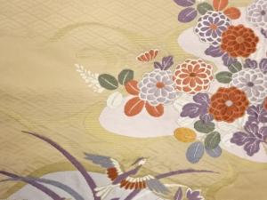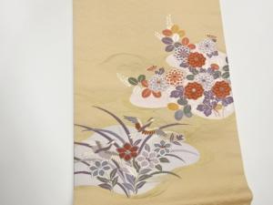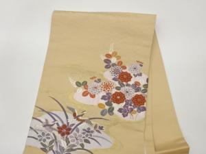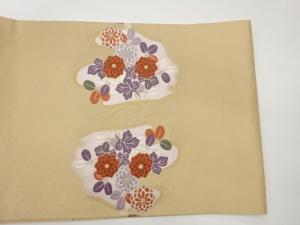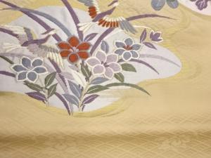 鳥・菊に花葉模様織出し開き名古屋帯(額縁仕立て)