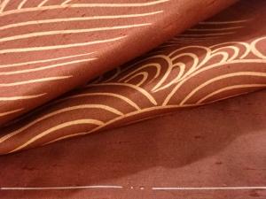 洗練された落ち着きのある色合いで、生地そのものは柔らかく、しわになりにくいと言われている。大島紬の特徴とも言える、織締めと呼ばれる技法で藍を用いて染められた糸を使用している。