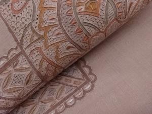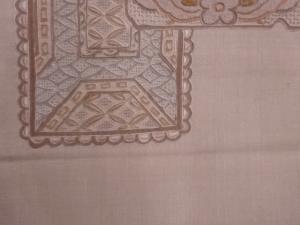 手織り紬汕頭相良刺繍花葉・抽象模様名古屋帯