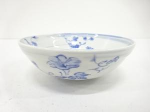 曽根幸風造 染付 朝顔 平茶碗