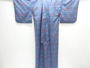 格子に絣柄織り出し手織り紬着物アンサンブル