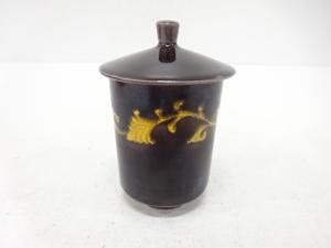 九谷焼 荘八造 紫釉 唐草文 湯呑