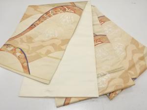 アンティーク 山並に鶴・芒・流水模様織り出し袋帯(材料)