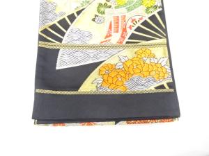 未使用品 扇に御所車・貝桶模様織り出し 袋帯