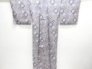 未使用品 枡に花・古典柄模様小紋着物