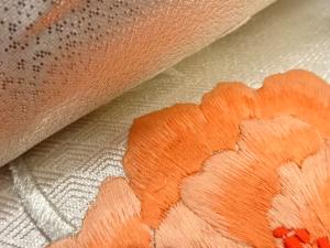 地紙に牡丹模様 刺繍 名古屋帯