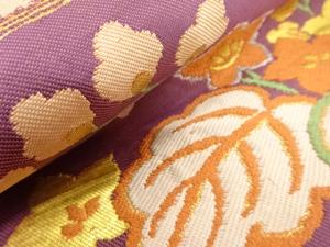 アンティーク 地紙に菊・桐模様織り出し名古屋帯(着用可)