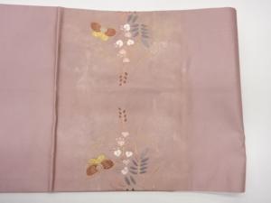 引箔蝶に花葉模様織出し開き名古屋帯(額縁仕立て)