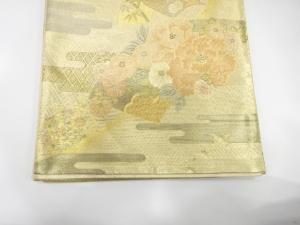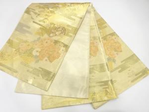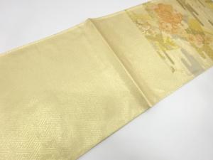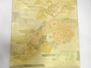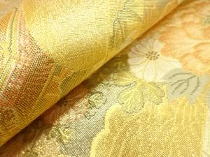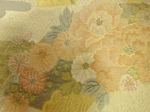 佐賀錦 地紙に牡丹・鶴模様織り出し 袋帯