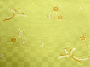 市松に花鳥模様織出し開き名古屋帯(額縁仕立て)