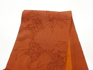 縮緬地相良刺繍牡丹・菊模様開き名古屋帯(額縁仕立て)