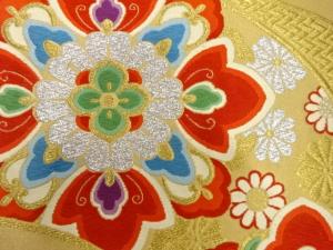 アンティーク 重ね地紙に華紋模様織り出し袋帯(材料)
