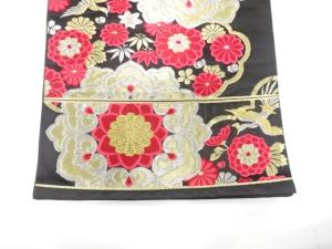 アンティーク 華紋に鳳凰・草花模様織り出し袋帯(着用可)