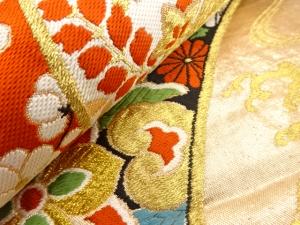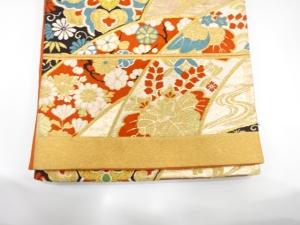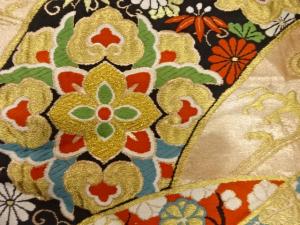 アンティーク 山並みに華紋・桐・菊模様織り出し袋帯(着用可)
