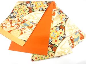 帯幅部分の折れ山線にくすみとスレと無地部分と帯裏に薄くすみと薄アクが有ります。