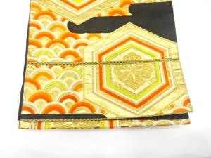 アンティーク 花亀甲に青海波模様織り出し袋帯(着用可)
