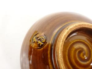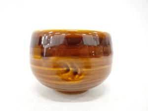 作家物 大樋焼 飴釉 福 茶碗
