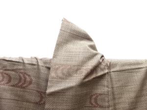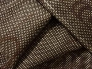 洗練された落ち着きのある色合いで、生地そのものは柔らかく、しわになりにくいと言われている。大島紬の特徴とも言える、織締めと呼ばれる技法で藍を用いて染められた糸を使用している。