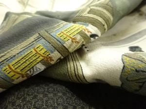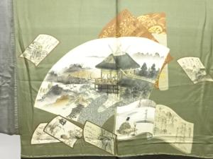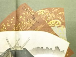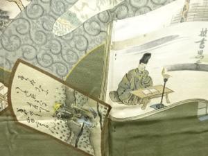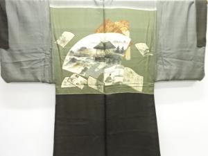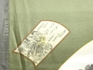 アンティーク 地紙に時代人物風景模様肩裏お召男物羽織