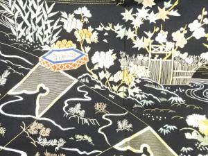 未使用品 仕立て上がり 貝桶に草花模様刺繍留袖(比翼付き)