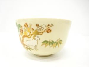 京焼 宮地英香造 金彩色絵 羊に松竹梅 茶碗