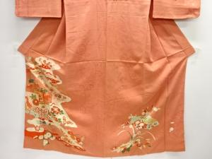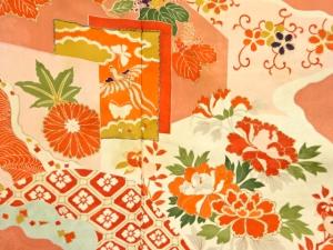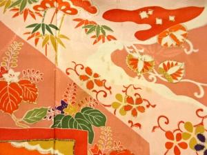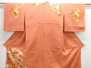 アンティーク 紋錦紗色紙に花古典柄刺繍着物