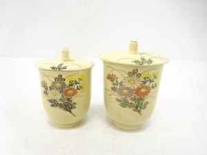 作家物 薩摩焼 金彩色絵 蓋付湯呑