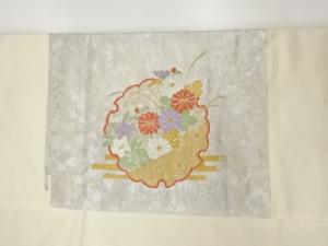 雪輪に草花・紗綾形・ヱ霞模様織出し名古屋帯