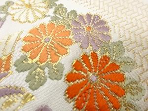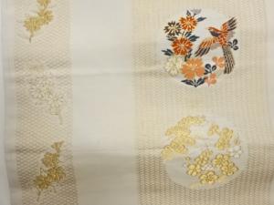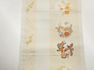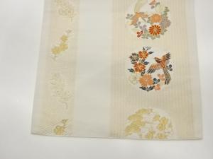 縞に鳥・秋草模様織出し名古屋帯