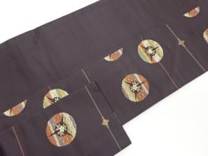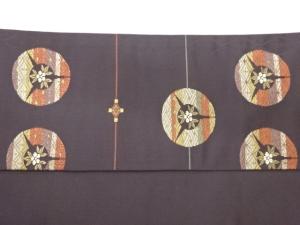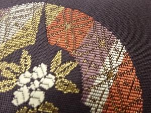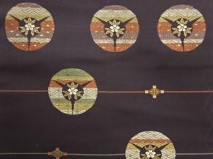 丸文に花葉・菱模様織出し名古屋帯