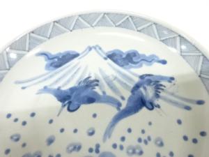 古伊万里 染付 富士 鶴 六寸皿